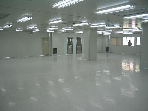 圓弧墻角、門、窗框等一般采用專用氧化鋁型材制造地面可采用環(huán)氧自流坪地坪或高級(jí)耐磨塑料地板,有防靜電要求的,可選用防靜電型。